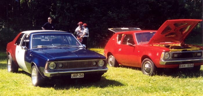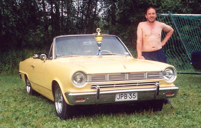 Raimo Vuorensivu (middle) and his '65 American Convertible won the biggest award of them all, the People's Choice. It took him a while to recover from the shock as he was almost certain he wouldn't even rate up the the Swedish/Norwegian cars. Ari Tekokoski won 'Longest Driven Car' award for his '67 Rebel Cross-Country and to his total suprise A-V Nauha became third in '70s-'80s class with his Hornet.