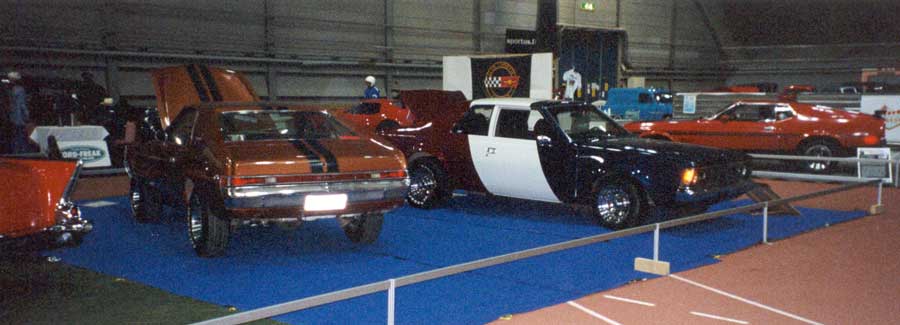 Autoja oli paljon, ja tuntui siltä että 90% niistä oli vain näyttelyautoja, ainakin jos laskettiin trailereiden määrä hallin parkkipaikalla... Ajoin itse autoni sissinä paikalle ja kotiinkin asti päästiin näyttelyn jälkeen. Vallius olisi varmasti tehnyt saman, mikä vain AMX:stä olisi löytynyt sisusta missä matkustaa...