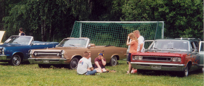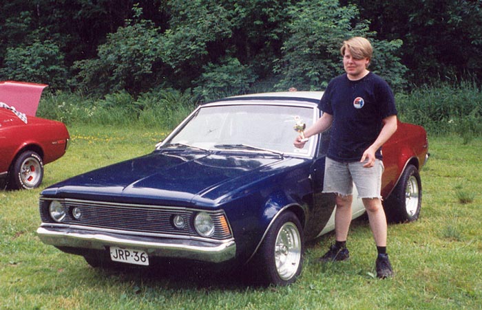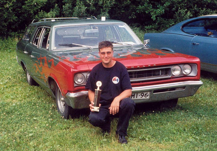 Raimo Vuorensivu (middle) and his '65 American Convertible won the biggest award of them all, the People's Choice. It took him a while to recover from the shock as he was almost certain he wouldn't even rate up the the Swedish/Norwegian cars. Ari Tekokoski won 'Longest Driven Car' award for his '67 Rebel Cross-Country and to his total suprise A-V Nauha became third in '70s-'80s class with his Hornet.