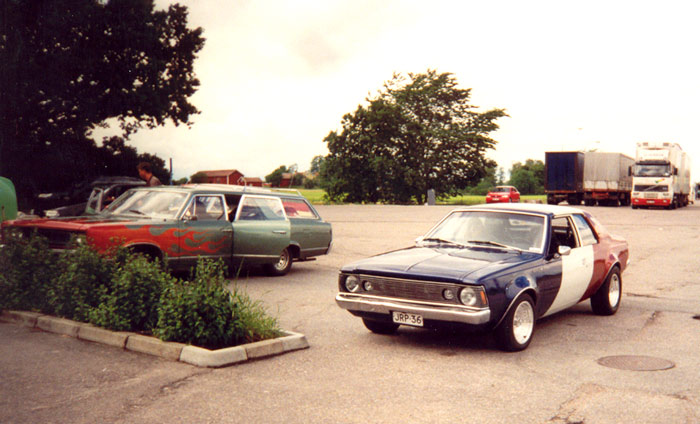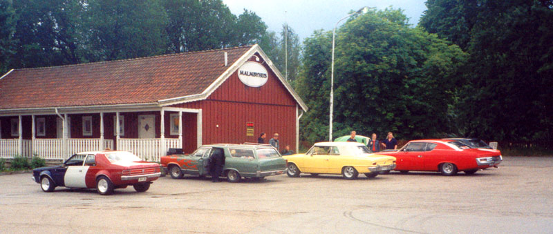 Next morning we left around noon saying goodbyes to just about everyone and headed to Stockholm. On the way we stopped at a nice restaurant and here you can see 4 of the 5 Finnish cars in Malmbyhus. Johanna's Javelin isn't pictured becouse they had to catch an earlier ferry to Helsinki (when the rest of us went by ferry to Turku).