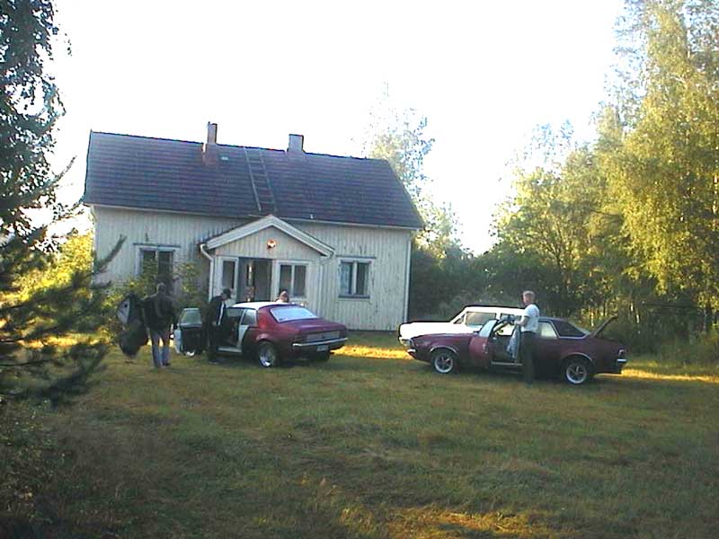 When we arrived at the 'camping place' the suprise was quite pleasant. Juha Pihkanen hadn't promoted the place very much and basically he had just stated that it was "possible to sleep there in the middle of the mildew and decay, bring along a tent." Not very pleasing to the common car hobbyist. The house itself was very much intact (shown in the photo below) and Juha had cut the grass on the yard so it would have been quite easy to set up a row of tents outside even if it was raining. Happily the rain almost stopped as the night approached, and we bathed in a very cozy original Finnish sauna, had a few beers, and along the night it became clear that we'd all be able to sleep indoors at comfortable and soft beds laid down on the floor. During the evening a few AMCCF members called and checked on us and how we were doing, and one unfortunate member broke his '71 Matador 232 right before he could get to Forssa, we tried giving technical advice, but we lacked the part he needed for his car, happily someone else helped him out on the road and he made back home safely.