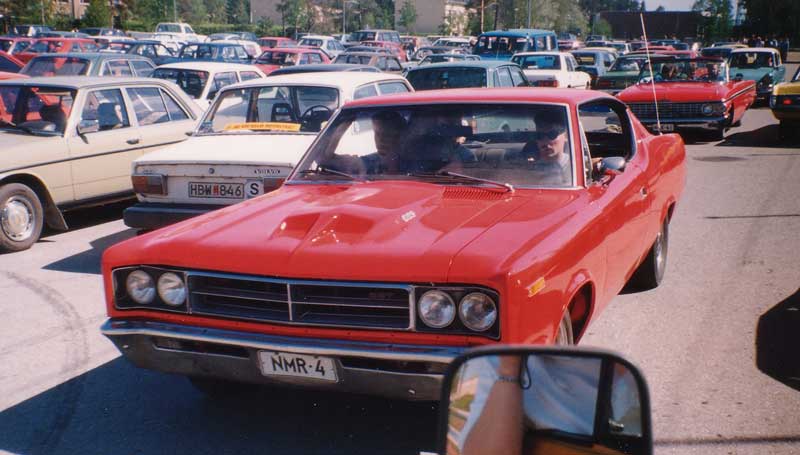 Paikalle saapuvat autot edustavat kerhoa molemmat omalla tyylillään. Juha Makkosen '70 AMC Rebel SST 2D HT 360cid edustaa nopeampaa ja järeämpää muskelikautta...