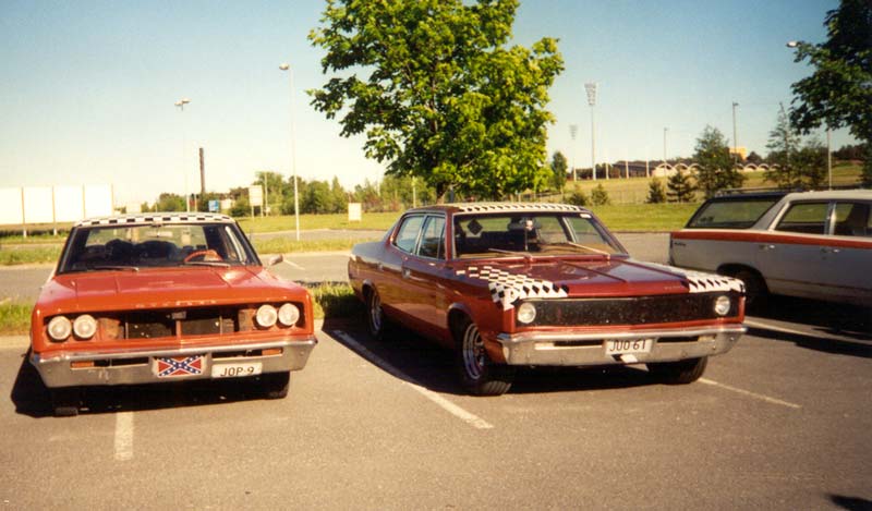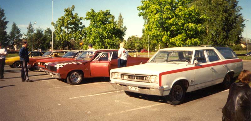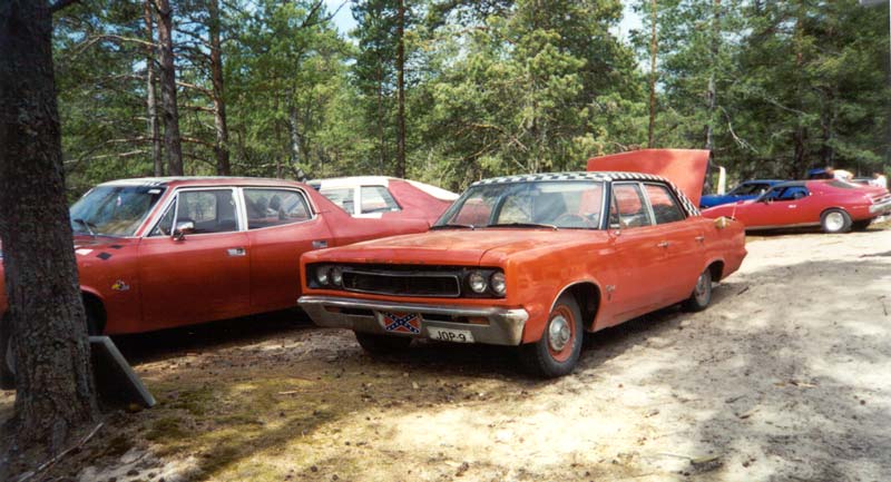 There were 3 Rebels present as well, and here are a few pics of them. Pictured below are Tero Kinnunen's orange '67 Rebel 4D 258cid, which he drove from across the country from Joensuu, as did Tekokoski Ari his '67 Rebel Cross-Country 232cid. In the pictures you can also see Juha Makkonen's cool looking rock'n'roll '70 Rebel 4D 304cid which we drove to Sweden on our trip there.