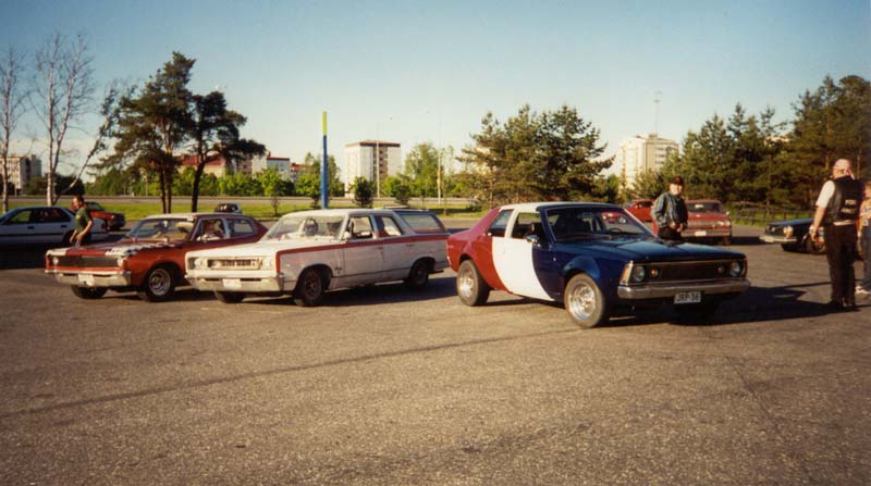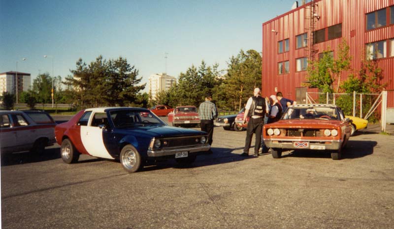 On Saturday, after waking up and eating on the high quality restaurant that was at the camp site (the food was delicious!) the cruising started. a few cars were missing from the cruising due to some minor problems with getting to Pori in time, but most showed up. We gathered in a local burgerjoint called Hesburger, mainly becouse it has a big and roomy parking lot and also it's the usual meeting place for cruises at my hometown. Let me tell you, it was awesome to cruise in my hometown with almost a dozen AMCs following... Nothing quite like it.