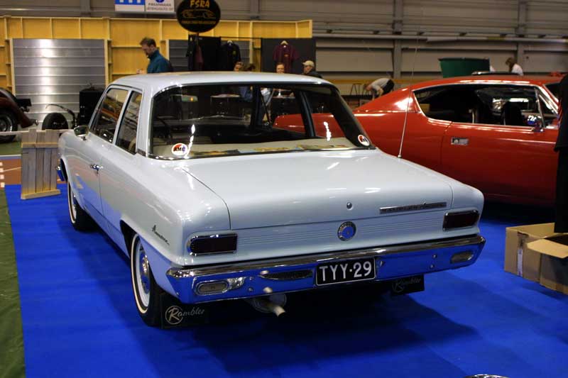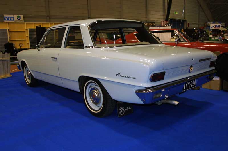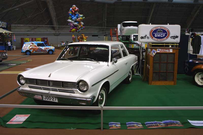 And look what we've got here. Another American..? That's right. There were a total of 3 Rambler Americans at the show, and all of them being '65 models. This is propably the first time American has ever appeared in the serious showfield in Finland, and this time the model did it with 3 cars. Not bad.. not bad at all... This Frost White '65 American 220 2D wasn't part of the club roster before the show, but it sure is now. What a nice car! A Completely redone engine and the car basically looks like new.