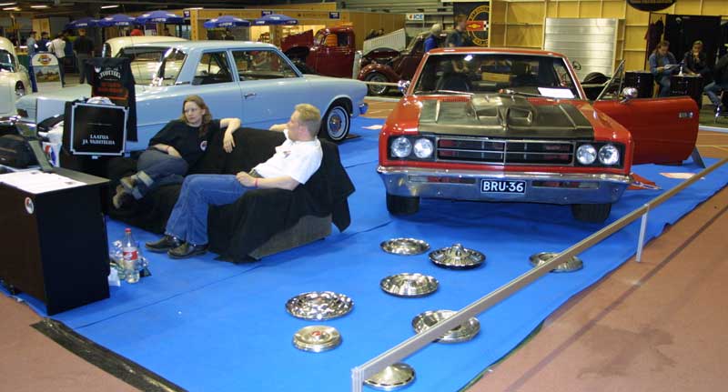 Like last year, we had a couple members take part in the showcase. This year it was Juha Makkonen and his girlfriend Virve Mustonen, Johanna Kölli and her man Juha Ropponen and A-V Nauha and his girlfriend Anu Nummikari. Couple other people took turns on the department as well including Petri and Hely Henttula (whom also provided the cool blue carpets), Juha Pihkanen (whom drove his car there) and Jarno Ahonen along with Juho Koivisto (whom helped with getting all the needed stuff for the show, like tables, etc). From Tampere FHRA a few people whom also belong in our club were also very helpful including Jouni and Irmeli Lipponen (thanks for the place to sleep 2 nights!) and Raimo Vuorensivu.